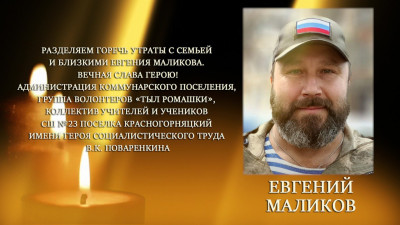 С глубокой скорбью извещаем о гибели нашего дорогого Евгения Маликова, защитника Родины,